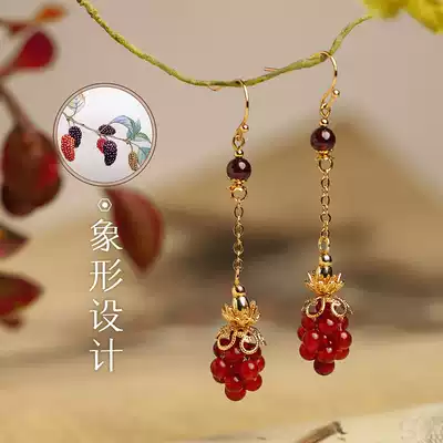 Phoenix Nirvana earrings female long version earrings personality design sense retro red agate earrings antique High sense