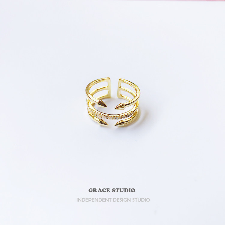G S Star Rain niche designer opening ring copper plated gold AAA zircon ring