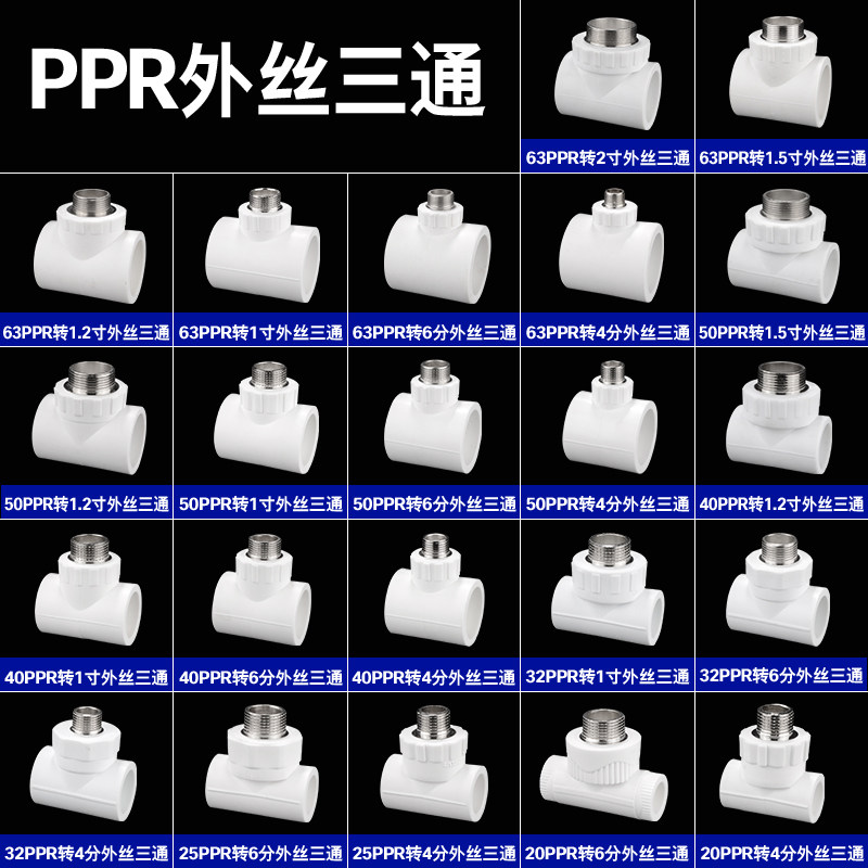 20PPR transits 4 parts outer silk tee 20PPR turn 6 points of external wire tee 25PPR turn 4 points of external wire tee 25PPR turn 6 points of external silk tee 32PPR turn 4 points