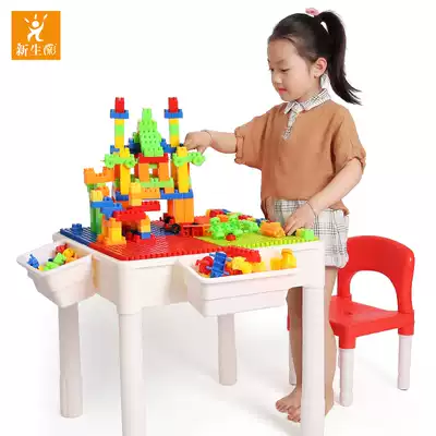 Children's big particle table 1-3-6 years old puzzle assembly puzzle plug toy learning table boy girl legao