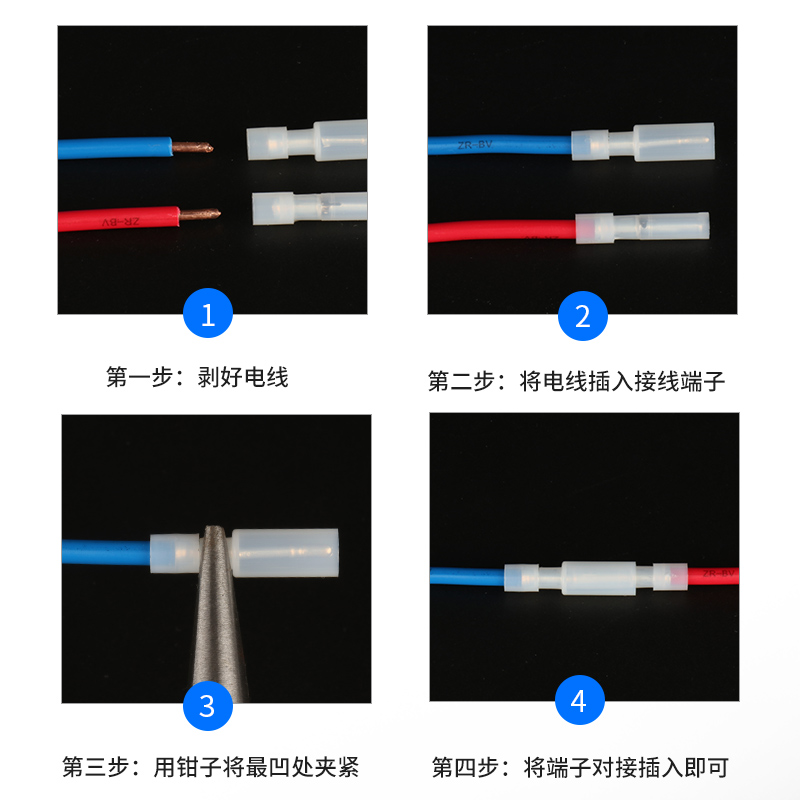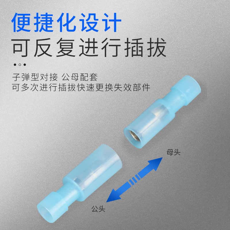 Plug-in Type Nylon Bullet Male Butt Terminal Quick Connector 1 25-2 5 Squared Pair Plug 30 sleeves