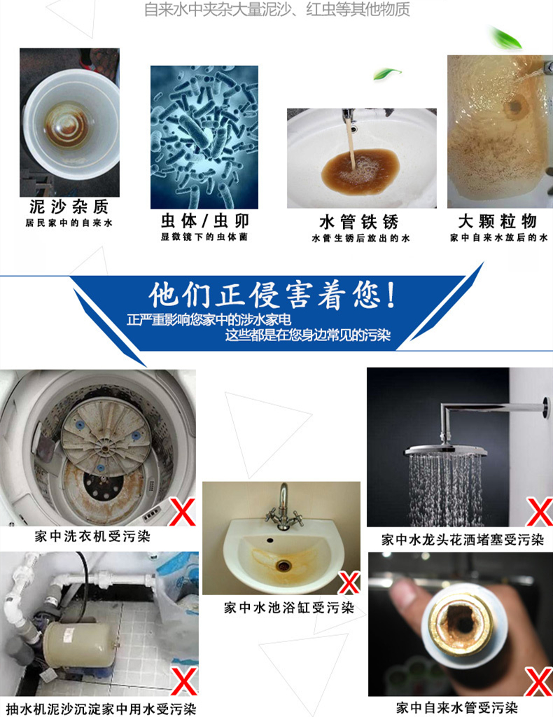 Household flushing pre-filter tap water pipeline backwashing large flow stainless steel filter pure copper water purifier