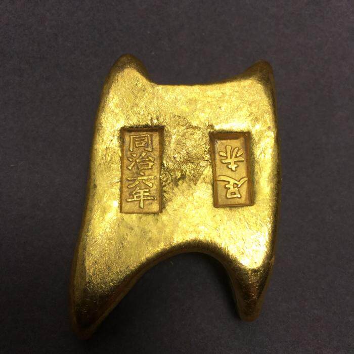 Antique antique play silver Yuanbao ancient coin old silver ingot brass gold plated made of old library silver Tongzhi six-year square Four corners