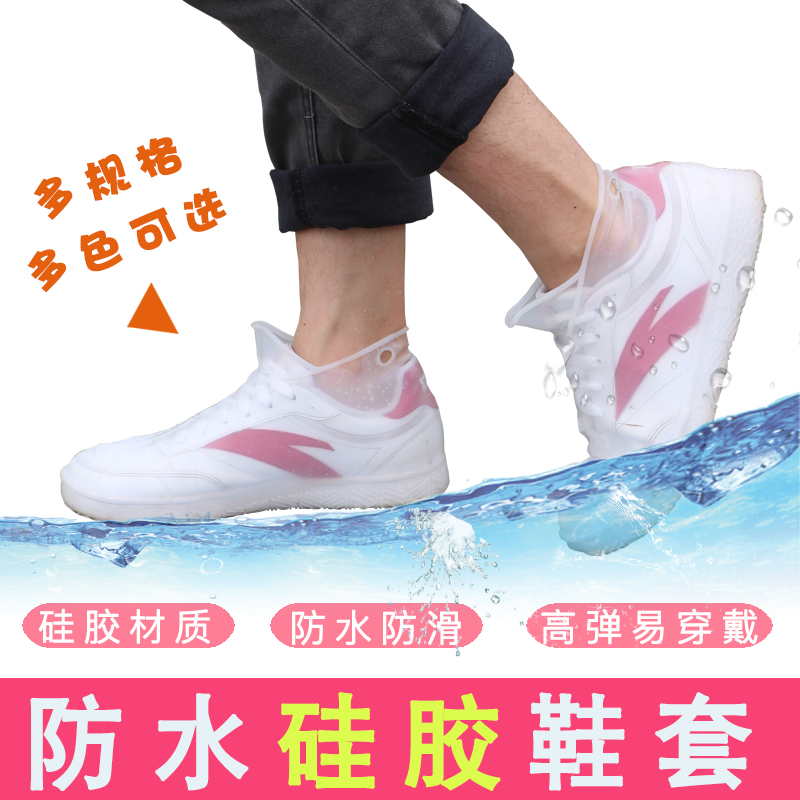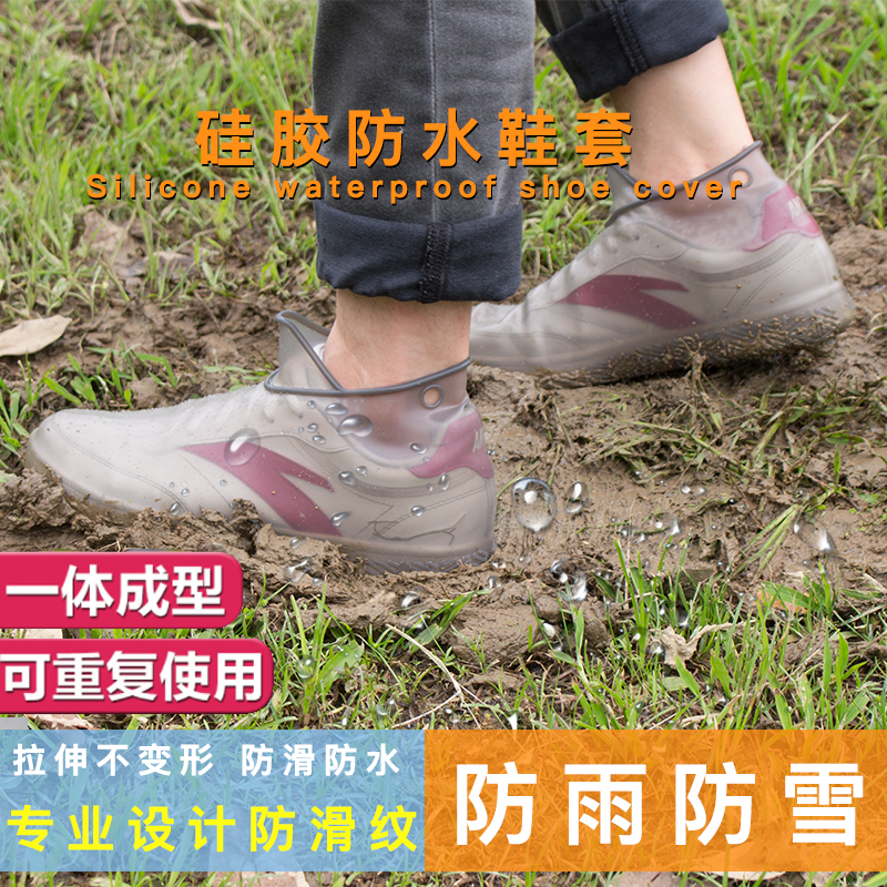 Silicone rainy waterproof shoe cover non-slip thickened sole foot cover wear-resistant beef tendon rainproof shoes women rain shoes artifact cover