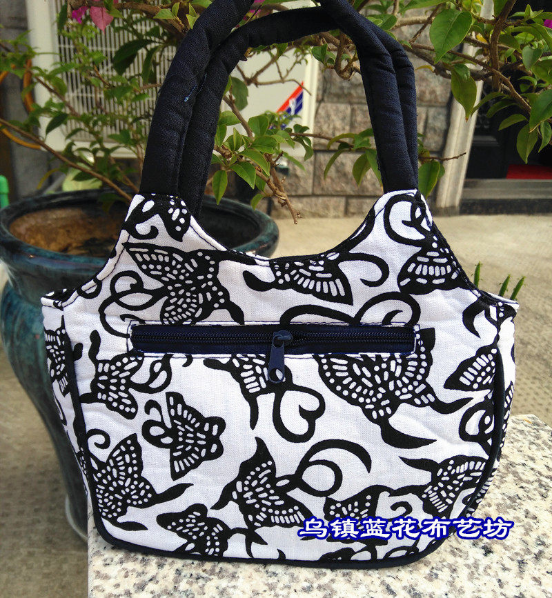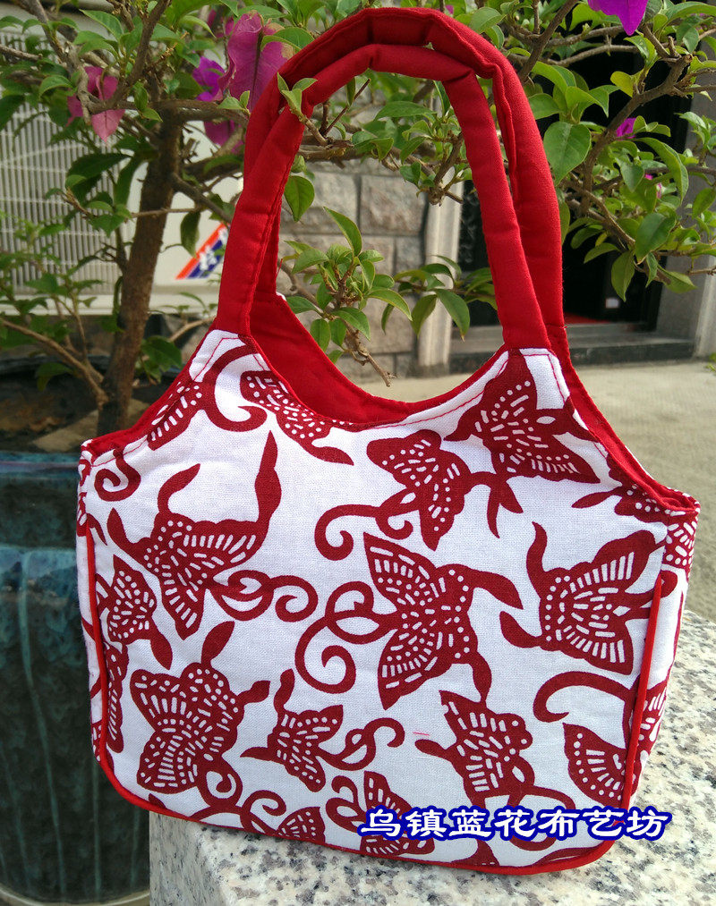 Wuzhen characteristic blue calico cotton handbag ladies bag mother grocery bag mahjong bag ethnic style small round bag - Taobao