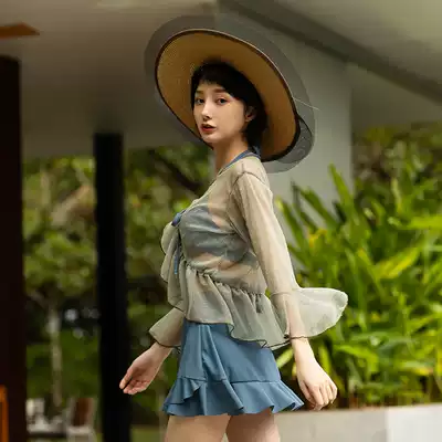 Student conservative swimsuit female hot spring three-piece blouse with small breasts gathered to cover the belly and show thin Korean bathing suit
