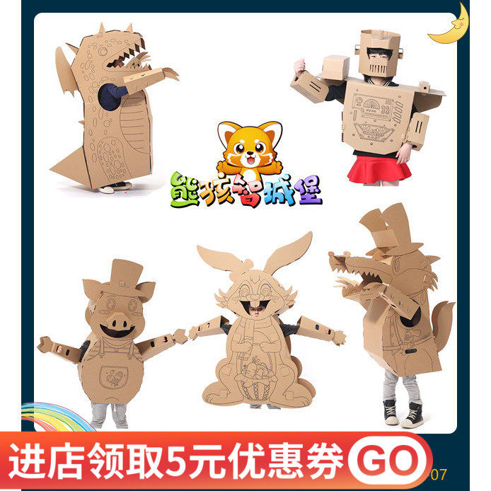 Child Cardboard Animals Can Wear Dinosaur Nursery School Handcrafted Working Carton Diy Assembled Rabbit Model Grey Wolf