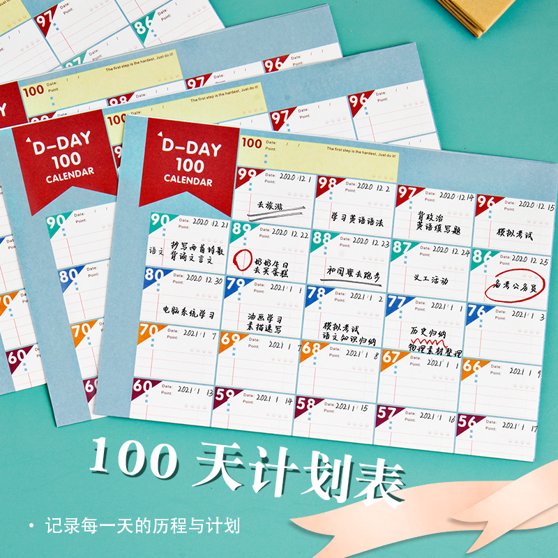 Plan 100 day start plan wall for student examination entrance examination countdown card fitness 100 day plan form for school school children's learning schedule