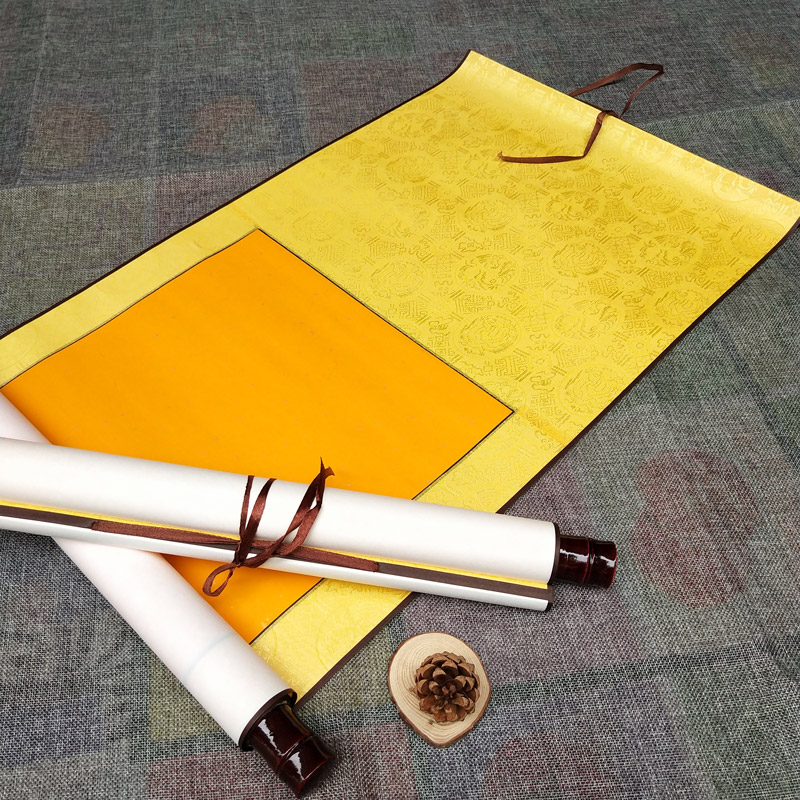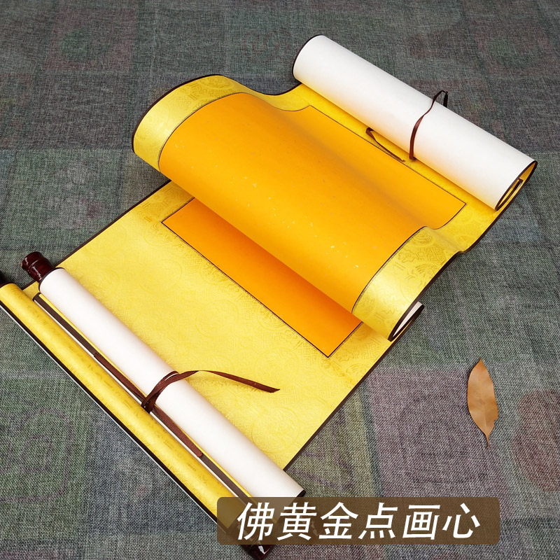 Clip Jiangyu Xuan Paper Blank Scroll Buddha Gold Dot Painting Hearts Bronzing gold Xuan paper hanging shaft Vertical Shaft Banners in Hall Customized