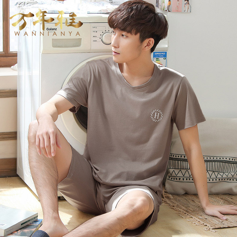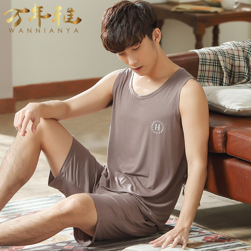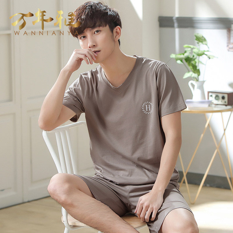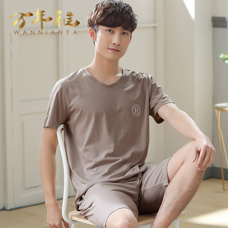 Cold pajamas summer sleeve thin Model shorts men ice wire home dress middle-aged daddy summer suit