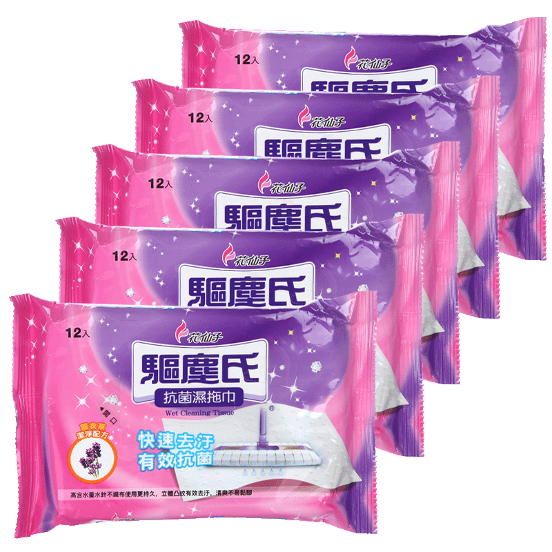 Native Taiwan native flower fairy exorcine electrostatic dust removal paper Antibacterial clean wet towels Lavender Herb Formula 5 Packs