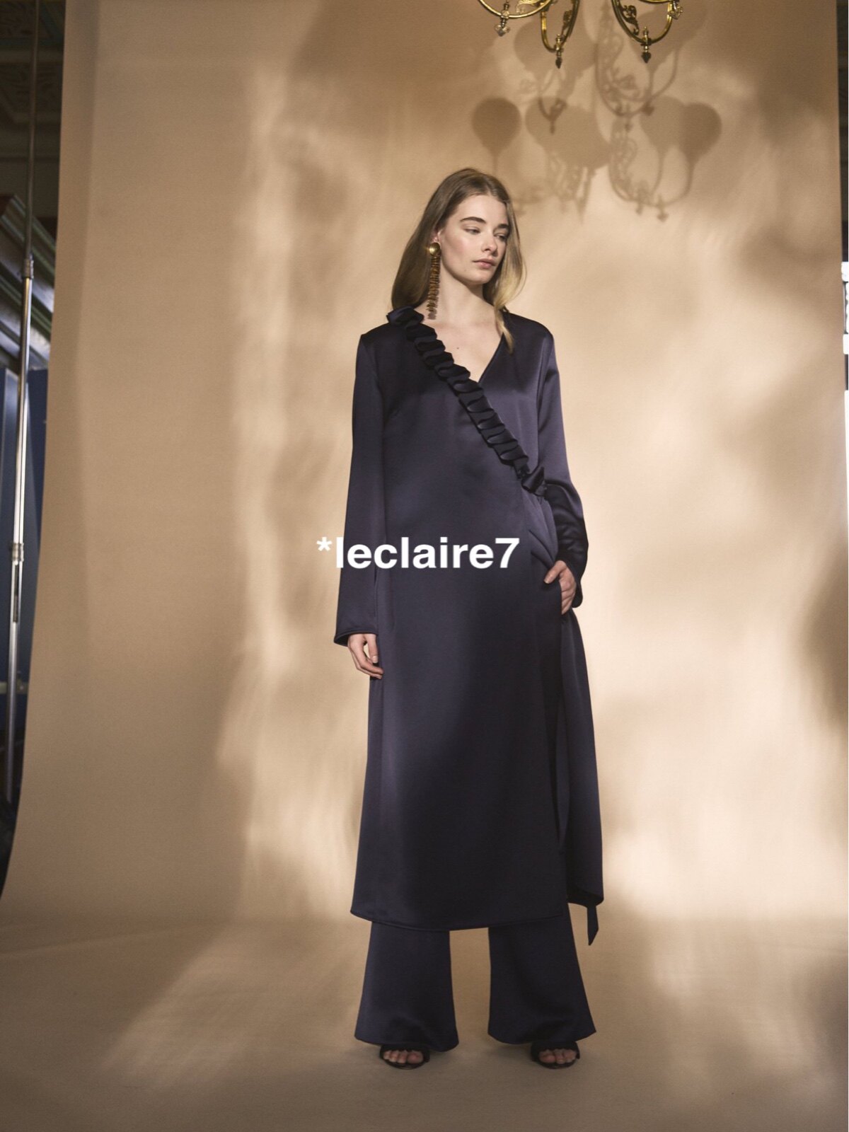 Spot Maggie Marilyn spring commuter dark blue slanted silk ruffled dress blouse