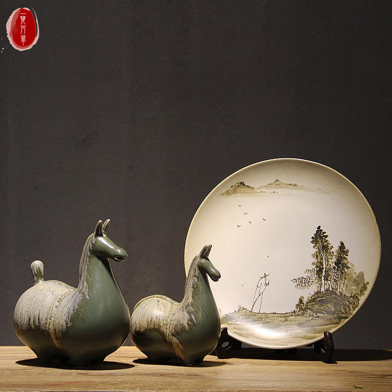 LO GULEYA hand-painted ceramic art plate decoration modern desktop living room porch Bogu shelf decoration gift