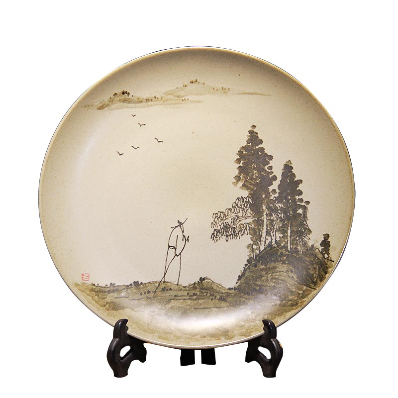 Retro platter Tang Ma pair of retro platter Jiangnan scenery platter