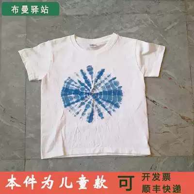 Dali tie-dyed T-shirt children's round neck Dali Banlangen blue dyed cotton cotton short sleeve Yunnan special gift tie-dye