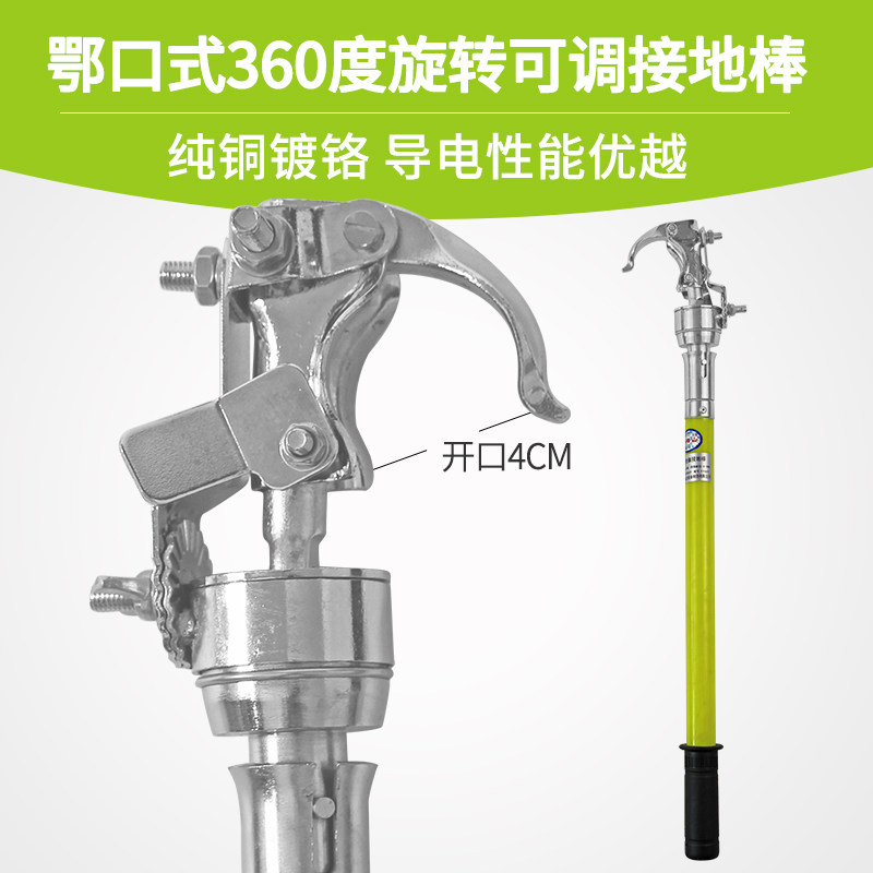 High-voltage grounding rod, flat-mouth busbar grounding, double-spring hook duckbill jaw-type adjustable universal head grounding pole