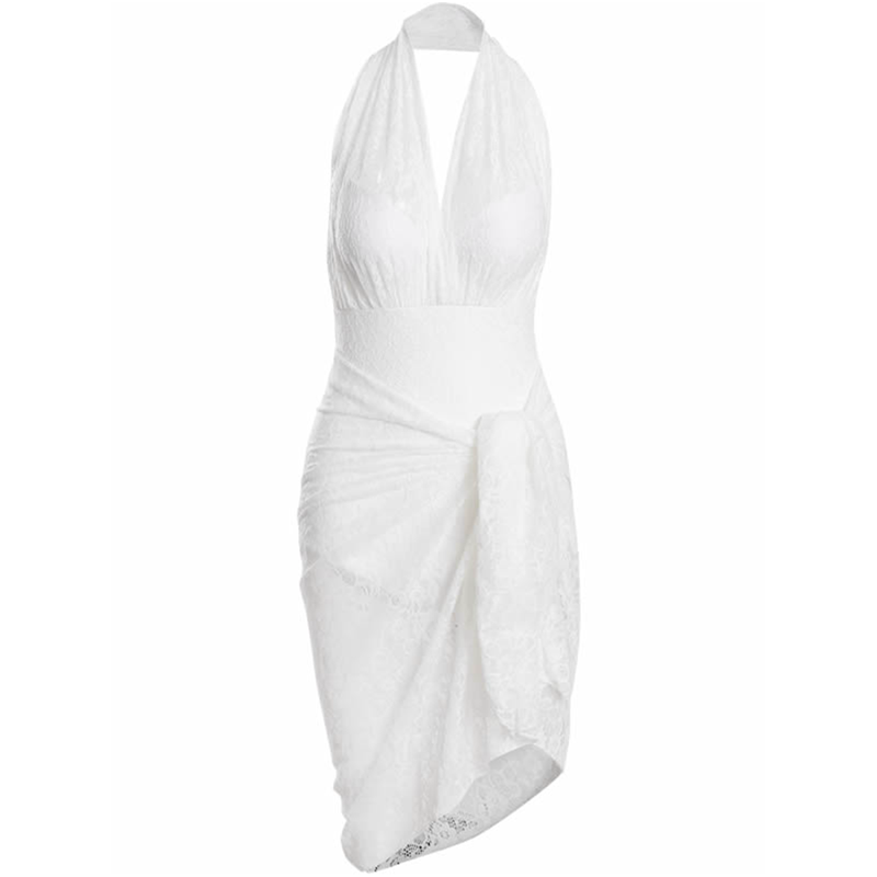 ins wind large size one-piece swimsuit Female sense lace draped yarn large chest gathered steel tray White hanging neck hot spring swimsuit