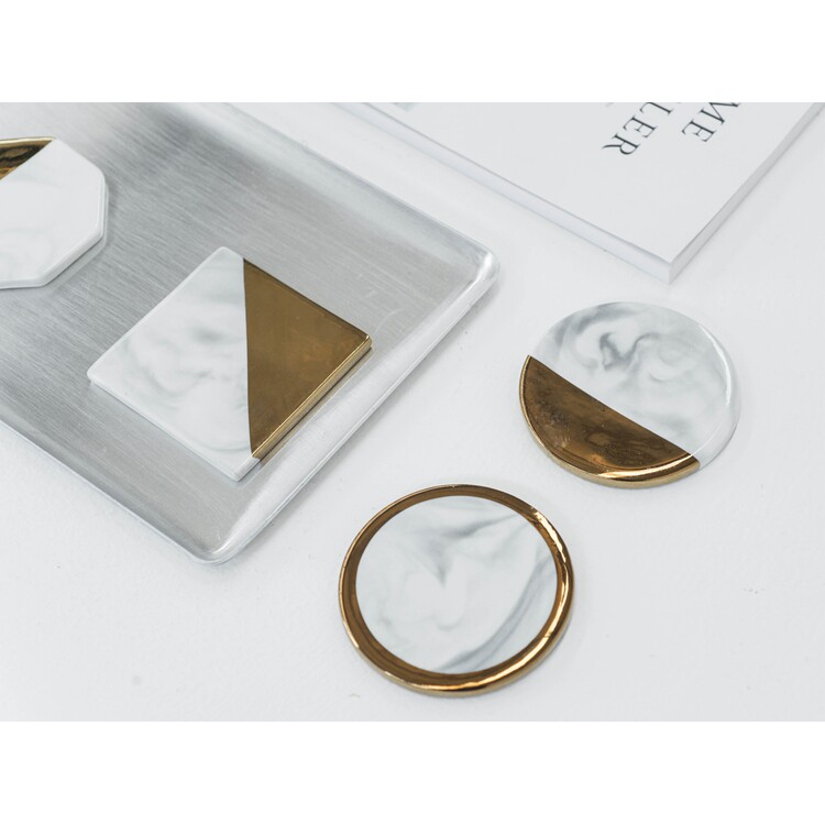Photography shooting props Nordic ins Denmark design marble pattern ceramic coaster insulation pad gold-plated edge photo