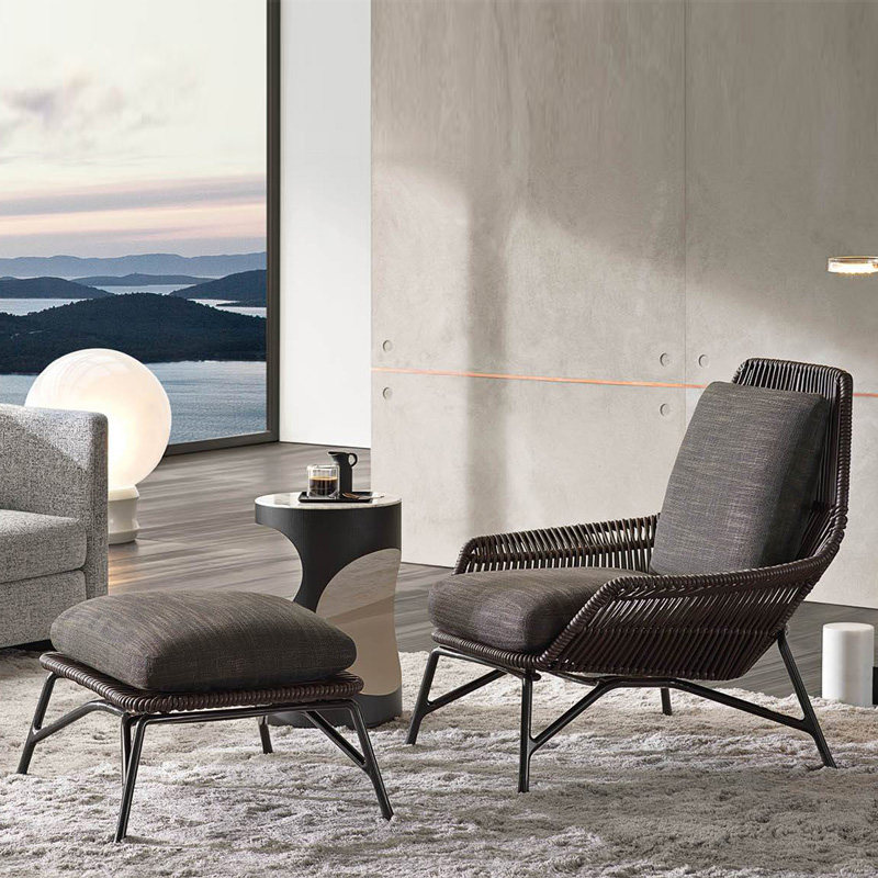 Nordic Outdoor Rattan Balcony Lazy Sofa Chair Sofa Creative Rattan Sofa Single Rattan Chair Leisure Waterproof Sunscreen