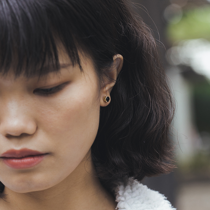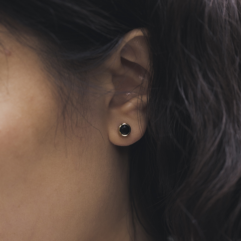 ruibeila18k yellow gold black agate simple round stud earrings men's earrings fashion single trend