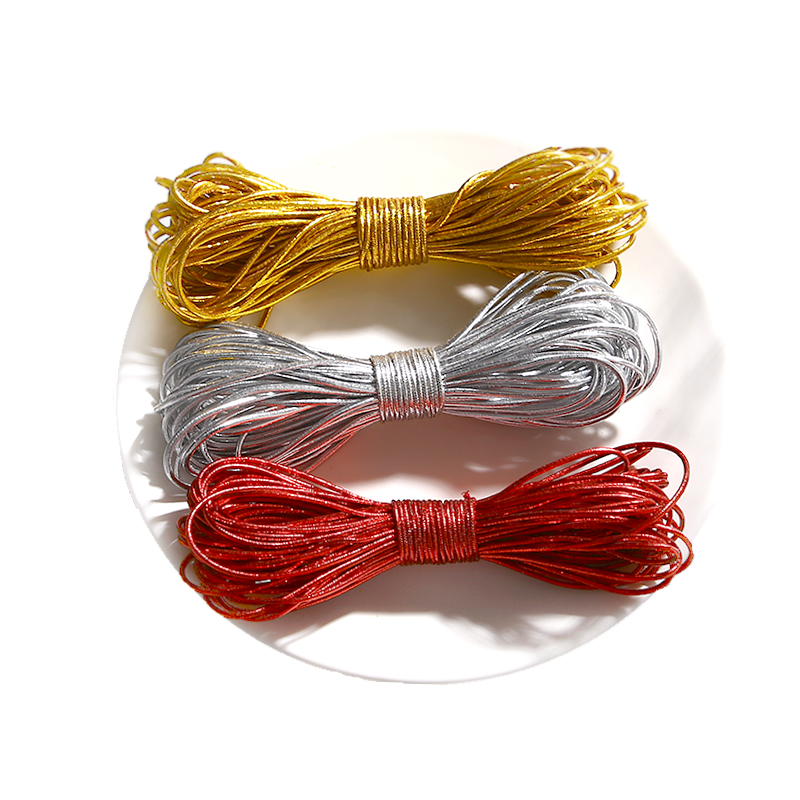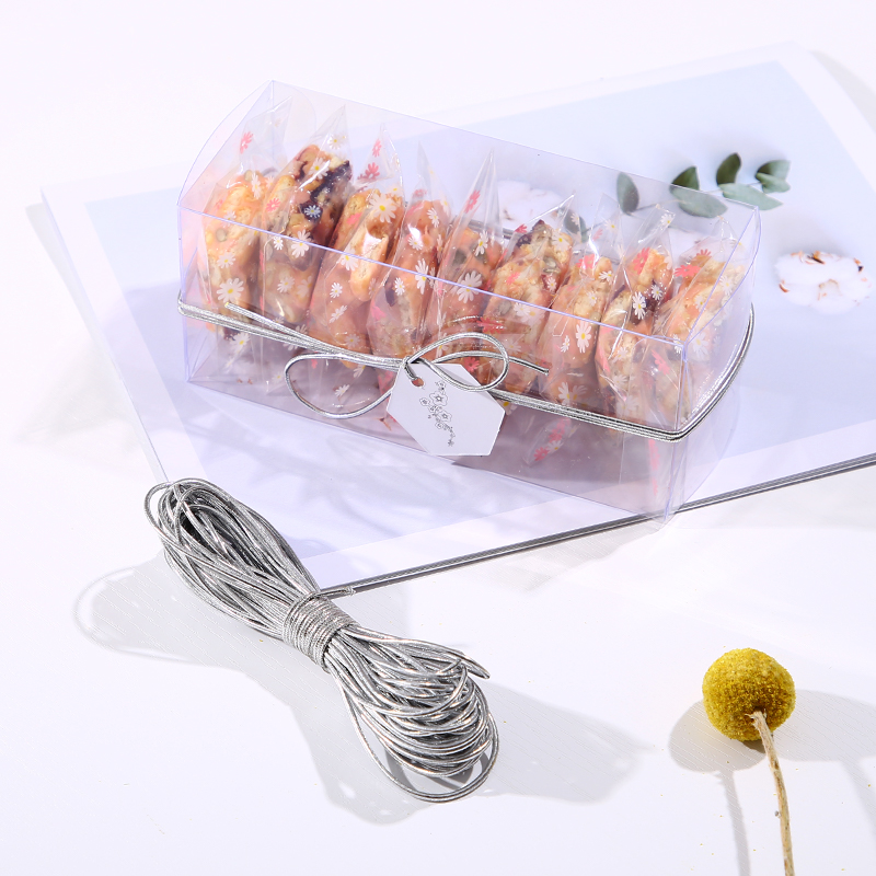 10m Elastic Rope Gold Silver Tag Rope Baking Snowflake Crisp Packaging Box Nougat Biscuit Gift Box Ribbon