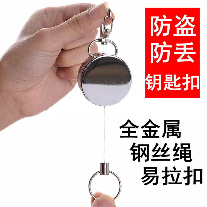 Wire rope keychain - all metal wire nylon - pull - tap - proof anti - theft and anti - loss - retractable key chain