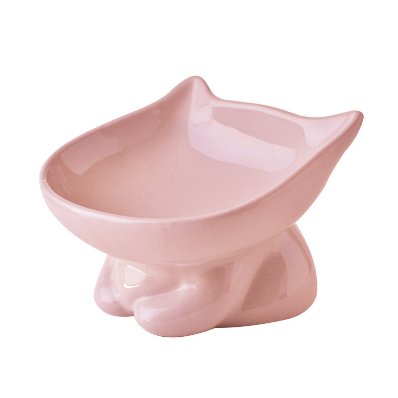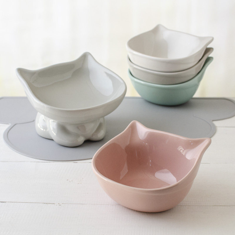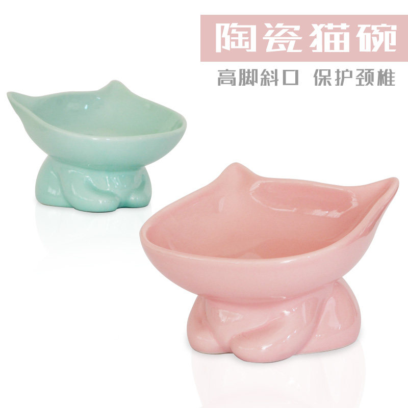 Pitched Cat Bowl Ceramic Flat Face Rice Bowl Cute Gaffi Cat Food Basin High Foot Protection Cervical Cat Food Bowl Kitty Water Bowl