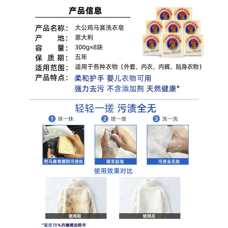 Italy imported big rooster head soap laundry soap Marseille soap girls underwear underwear children's soap 300gx8 pieces