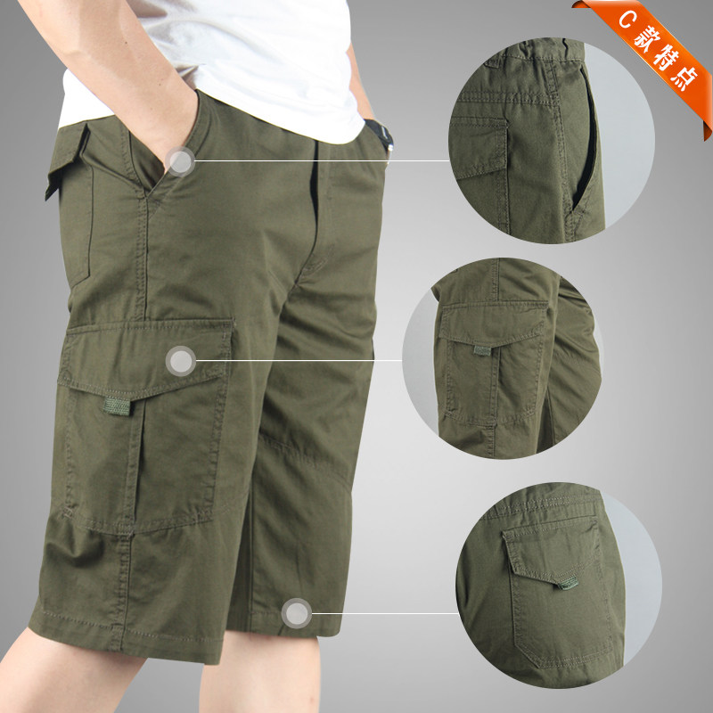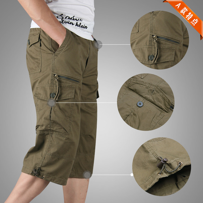 Cropped pants men's loose thin section men's five-point pants multi-pocket outdoor sports casual overalls pants men's shorts trendy