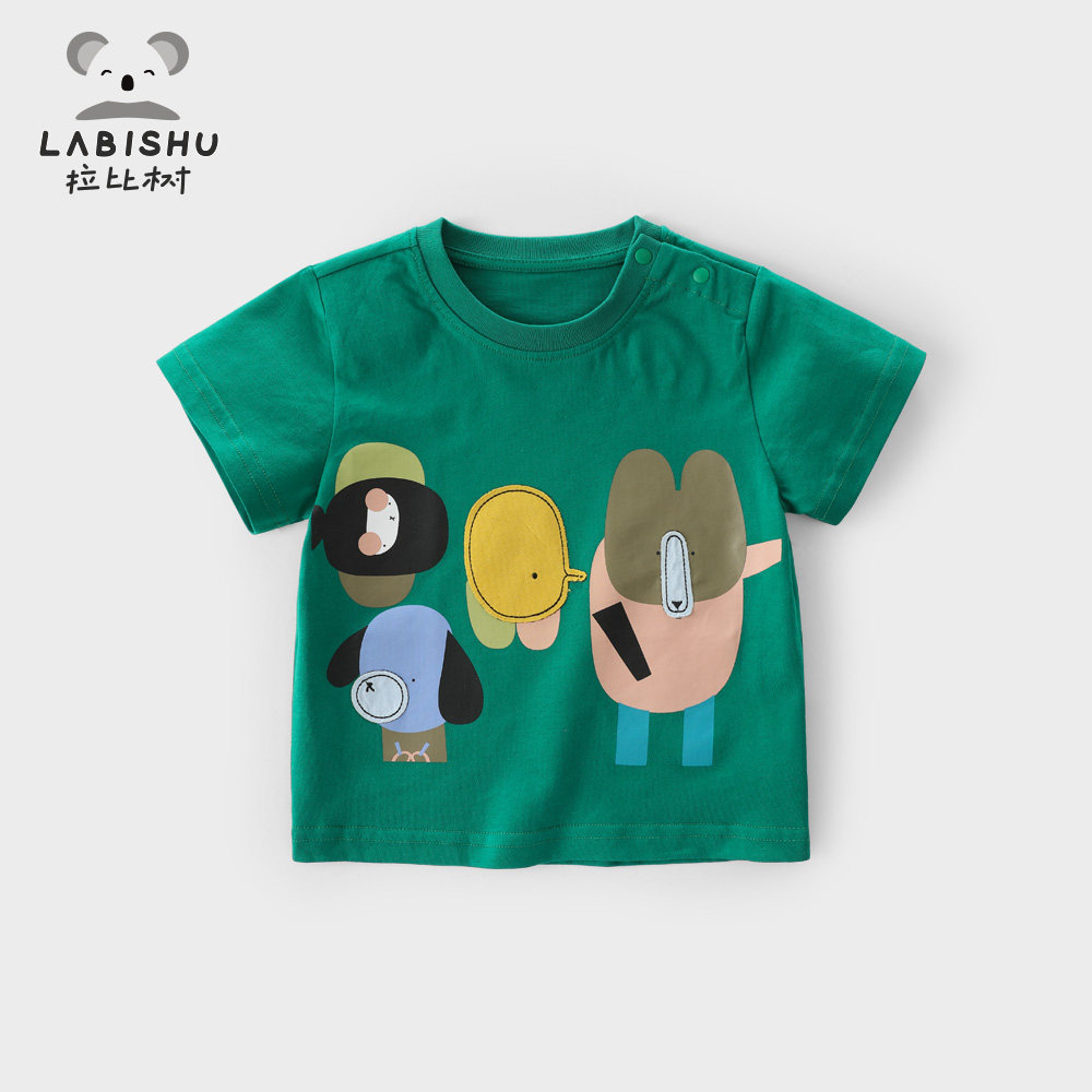 (Flush) Rabbi Tree Boy Clothing Boy Short Sleeve T-shirt Pure Cotton Summer Child Compassionate Animal Blouse-Taobao