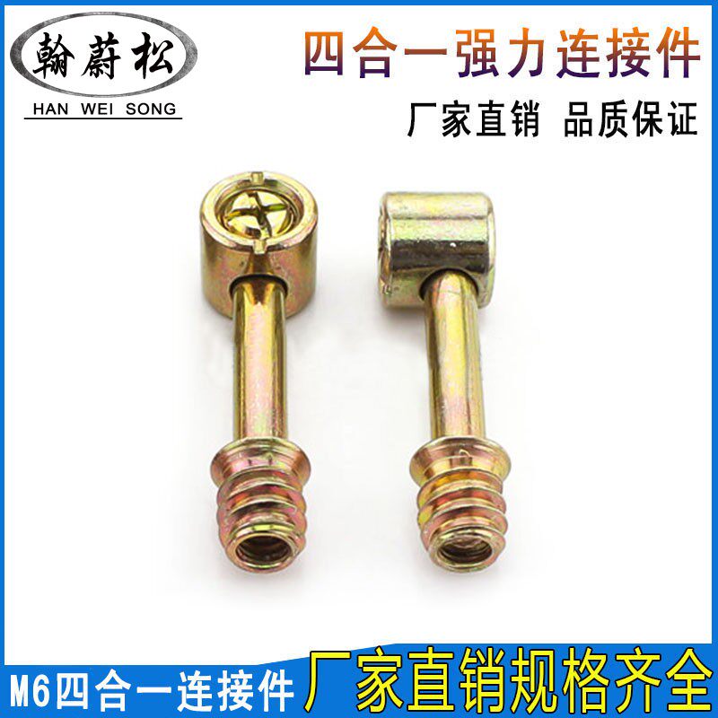 Powerful four-fit connecting piece screw wheel eccentric nut assembled wardrobe bed Jointed Furniture Five Gold Accessories M6