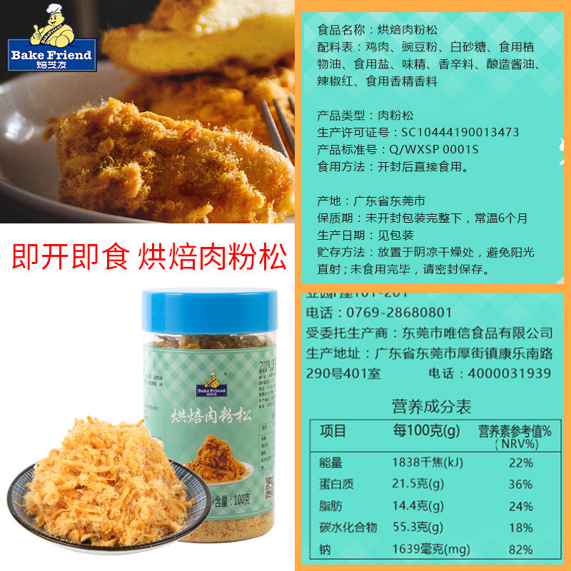 Meat powder floss baking bread sushi rice ball cake Meat floss babe baking raw materials casual snacks canned 100g