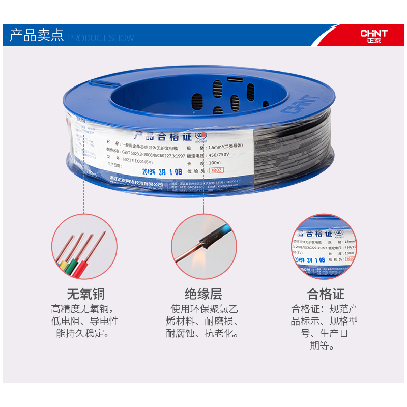 Zhengtai Wire & Cable Copper Core Hard Line BV 1 5 2 5 squared national Label flame-retardant copper wire 50 m Single-cored wire