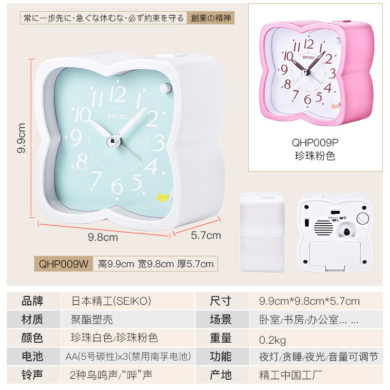 SEIKO Japan Seiko Lucky Four Leaf Grass Cloth Valley Birds Called Children Students With Cartoon Creativity Cute Little Alarm Clock