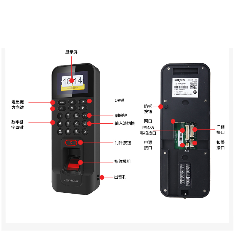 DS-K1T804F (fingerprint only) K1T804MF (fingerprint password IC card) K1T804MF (fingerprint password ID card)