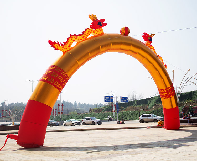 Gold Color Double Dragon Inflatable Arch opening Ceremony Wedding Dragon Arch Door Gas Molds Iridescent iridescent Arches Lions