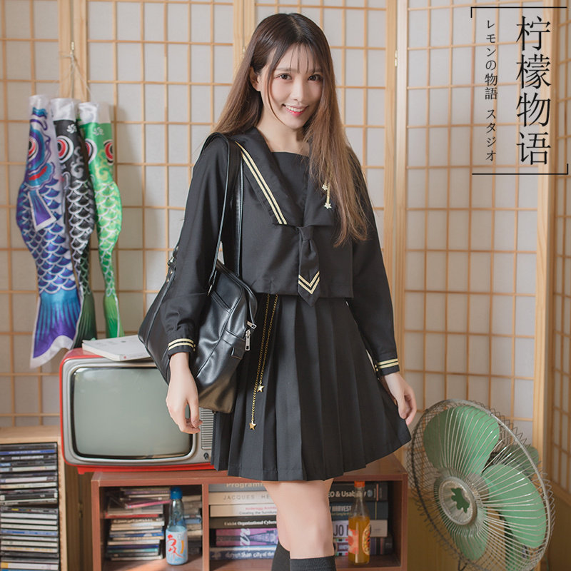 Dark Night Meteor Genuine Soft Sister JK Uniform Skirt Daily Deformed Papery Long Sleeve Sleeve Sleeve Sleeve Clothing Costume Women
