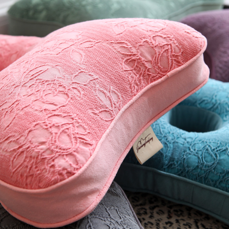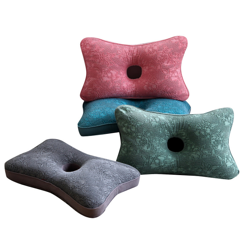 Single-hole ear pillow for the elderly to protect the ear buckwheat shell hard pillow core solid color washed cotton pillowcase to help sleep without pressing the ear pillow