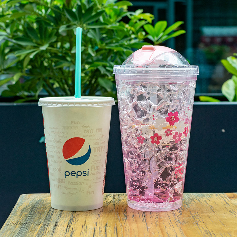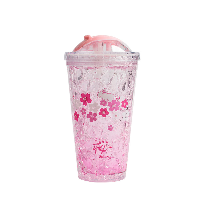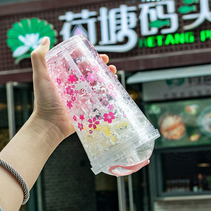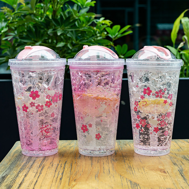 Backcar feather network red in straw cup of ice cup creative trend plastic cup cherry blossom ice cup household cup