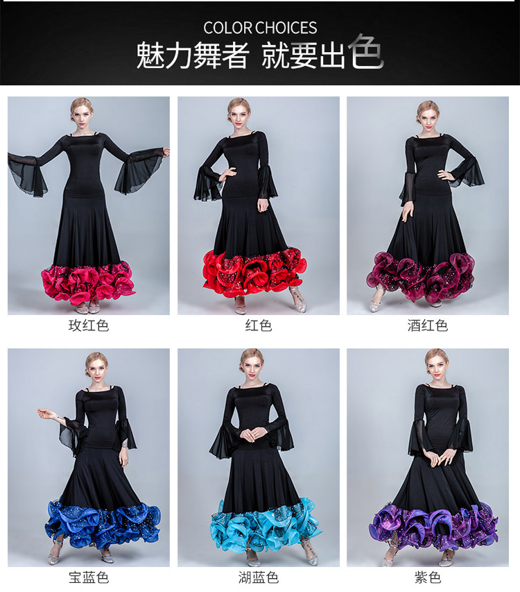 Morden Dance Dress Half Body Size Swing Long Skirt Waltz National Mark Intersex Dance Latin Dance Practice Lady Performance Dresses