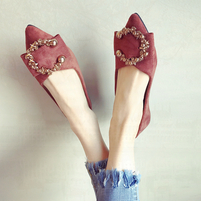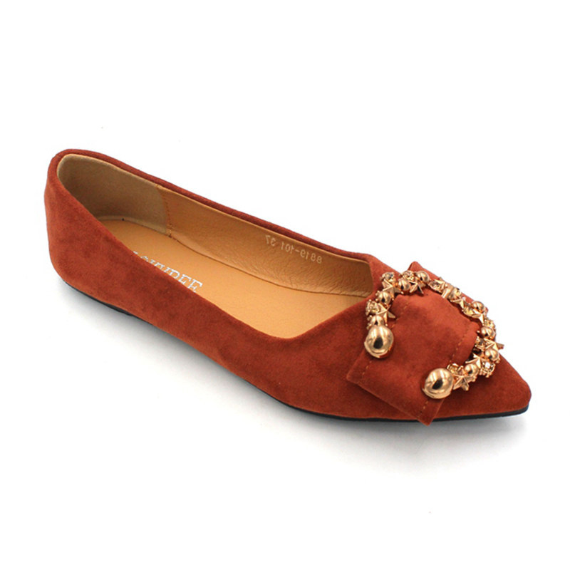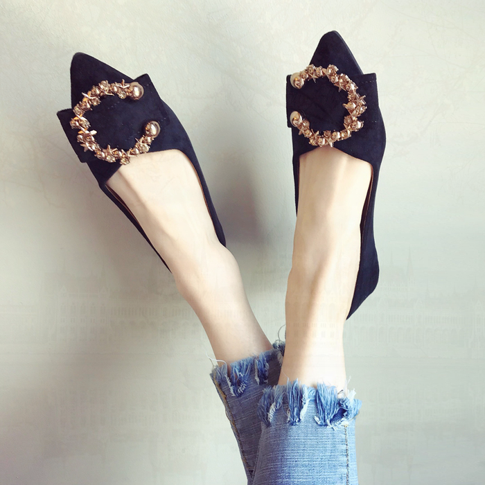 Hong Kong 2022 autumn new women's shoes leather large size metal buckle flat heel flat shoes women's pointed toe shallow mouth