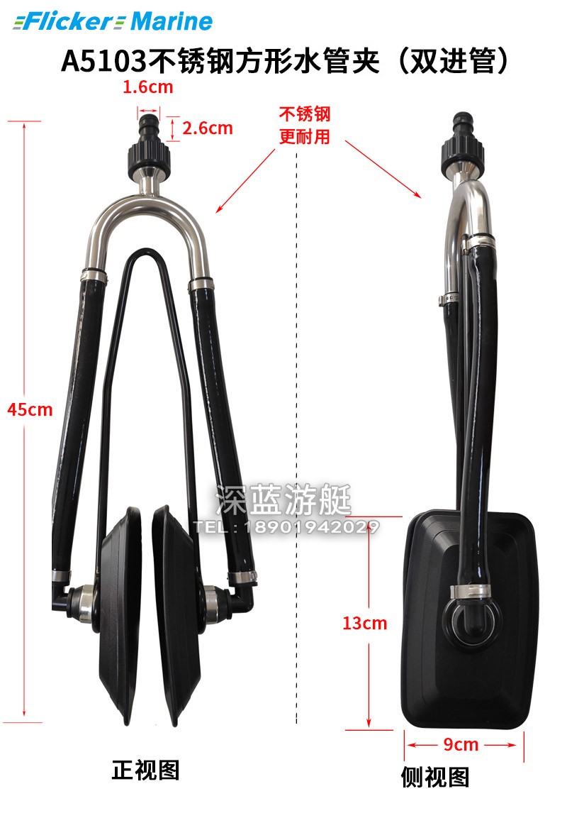 Square line water pipe clamp round row water pipe clamp stainless steel double water inlet cleaning water pipe clamp