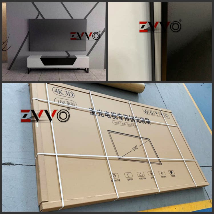 ZVVO 100 120-inch high-definition black grid hard screen ultra-short focus 4K anti-light frame curtain laser projection screen 16 9