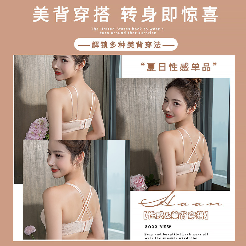 No Steel Ring Beauty Back Sexy Cross With Underwear Woman Little Chest Wrap Chest Thickening Cup Poly and anti-walking photoerase bra Summer-Taobao