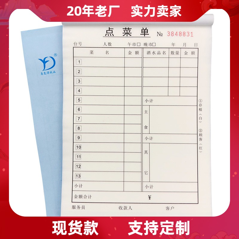 Easily reproduce paper order 36K double carbon free copy with pad order fast food restaurant takeout delivery order restaurant order barbecue restaurant order