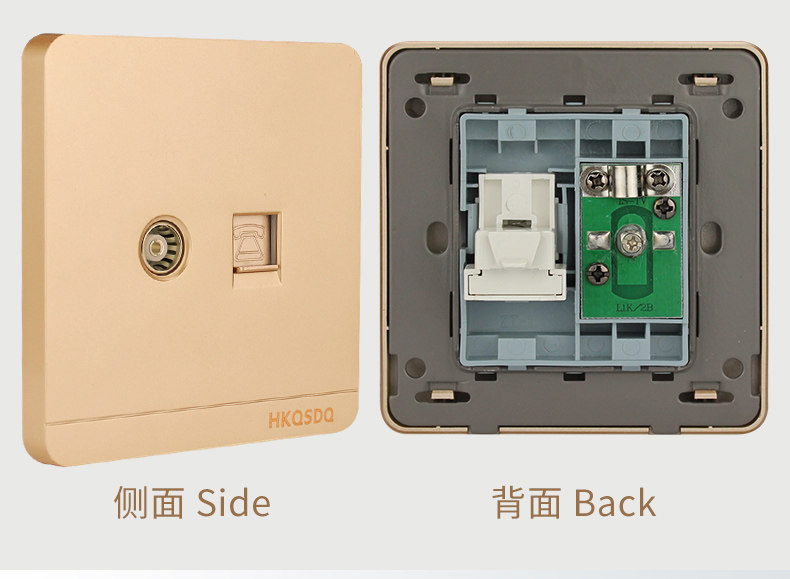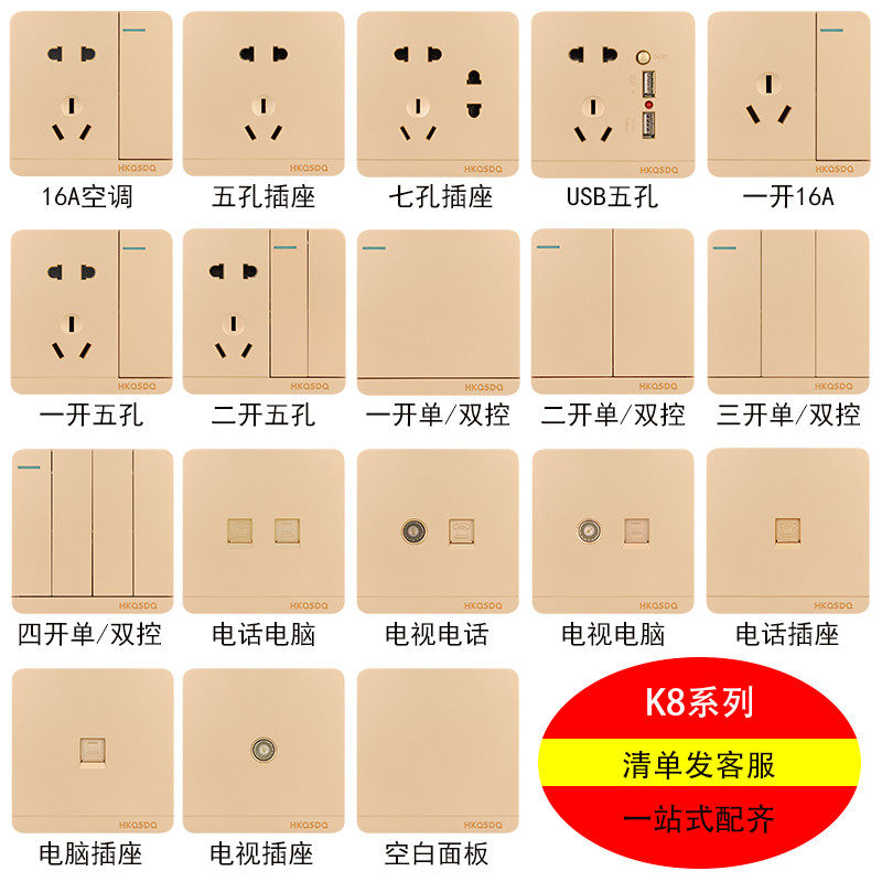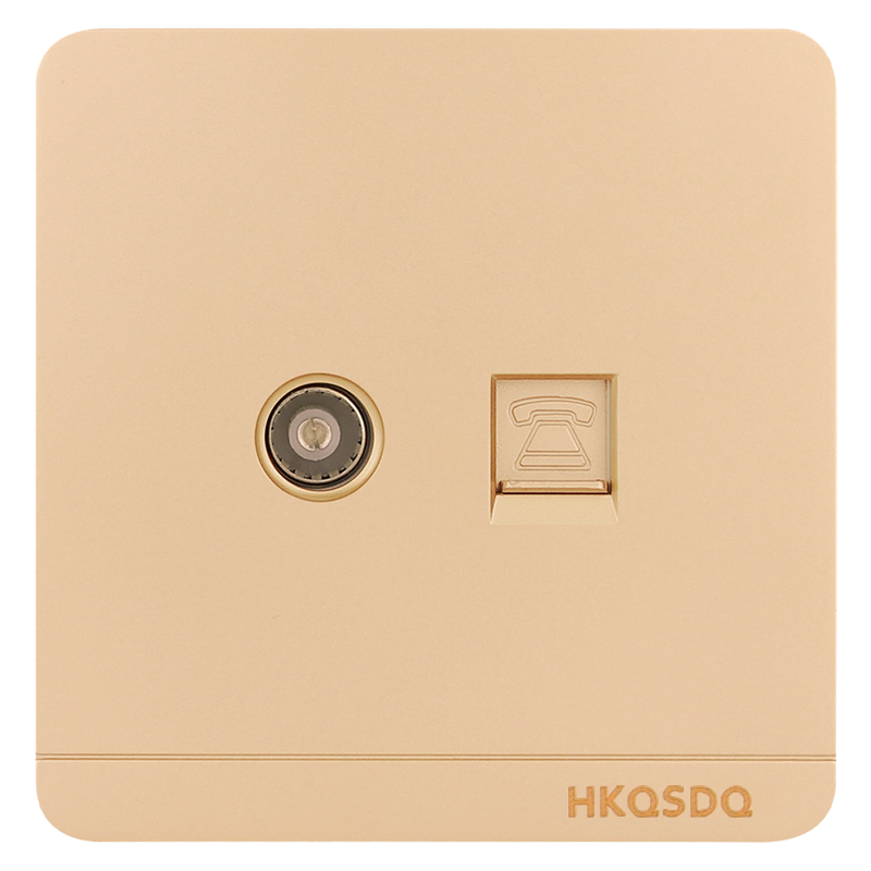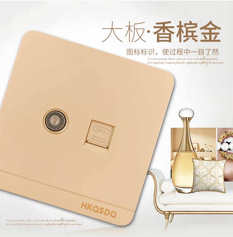 Qisheng champagne gold 86 switch socket TV socket crystal panel household cable TV telephone socket