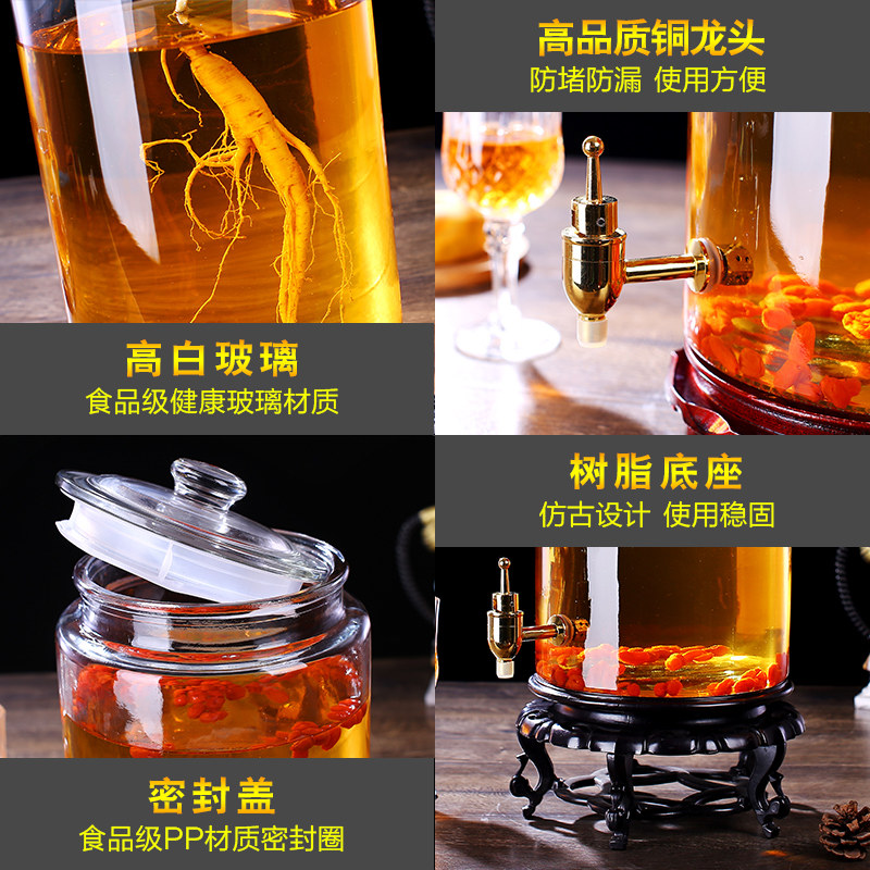 Soaking wine glass bottle with faucet ginseng wine bottle medicine wine bottle 10 catties 20 catties bubble wine bottle barrel medicine wine jar household