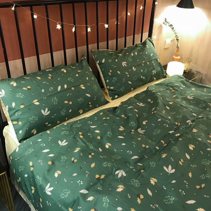 The Wizard of Oz American cotton four-piece set Antique dark green fresh small floral quilt cover double 2x2 3m