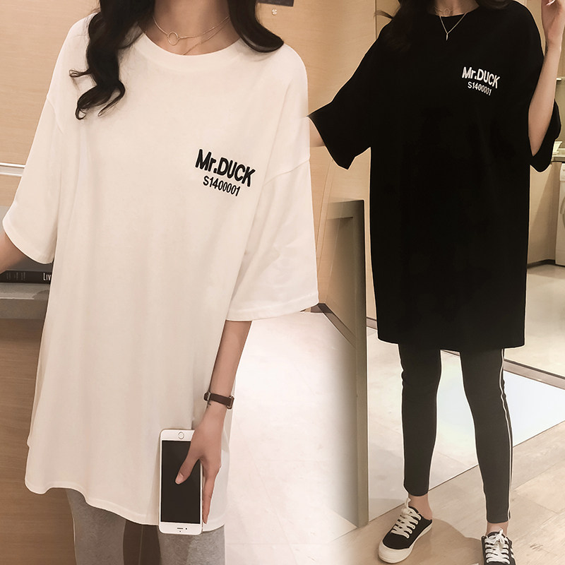 Fashion Tidal Moms Blouses 2020 Summer Dress New Pure Cotton Short Sleeve T-shirt Han Edition Large Size Medium Long Version Pregnant Woman Foreign Dress