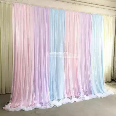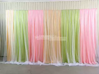 Double-layer rainbow color floating mesh background gauze cloth wedding props Kindergarten Children's Day birthday part stage decoration